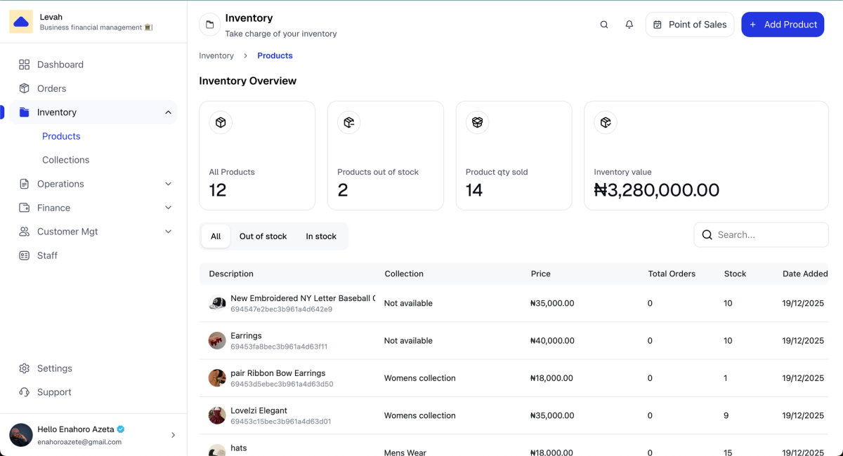 Levah is tackling this challenge head-on by providing formal retail shops with inventory, point of sale and accounting software priced in naira and by providing entrepreneurs with a custom ecommerce website and business management tools they need to run better operations.